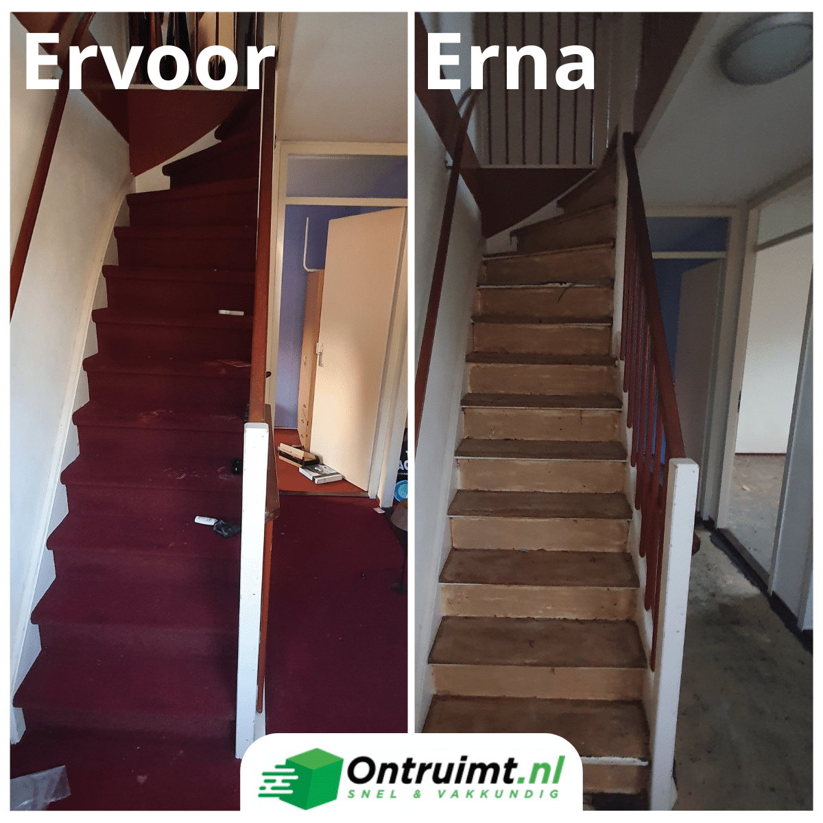 Het verwijderen van tapijt van de trap is veel meer precisiewerk en kan veel meer tijd en energie kosten. Vloerbedekking verwijderen van een trap is veel ingewikkelder, omdat het vaak veel beter vast zit. Zo kan het voorkomen dat vloerbedekking in een ruimte alleen op de randen of misschien zelf alleen op de hoeken is vastgelijmd. Dit kan ook vastgemaakt zijn met tapijtgrijpers op de randen waardoor het relatief eenvoudig losgetrokken kan worden. Bij een trap is dit normaal gezien niet het geval. Vanwege de veiligheid wordt dit altijd stevig vastgemaakt met bijvoorbeeld lijm, spijkers of nietjes. Het begint met het lossnijden van alle randen door middel van een stanleymes. Bij deze stap dient u al voorzichtig te werk te gaan om schade aan de traptreden en stootborden te voorkomen. Daarna kunt u de stroken weer het beste in kleinere delen snijden. Dit maakt het makkelijker om het tapijt los te trekken. Ook in dit geval geldt dat het tapijt wat al lang op de trap zit vaak makkelijker kan worden losgetrokken. Het hetzelfde gereedschap als die wij eerder hebben benoemd kan de klus snel eenvoudiger worden. In het geval dat de lijm nog sterk is en u de vloerbedekking of hardnekkige lijmresten niet verwijdert krijgt kunt u ook hier weer het beste lijmverwijderaar gebruiken. De lijm wordt dan opgelost waardoor het makkelijker is om zowel de vloerbedekking als lijmresten te verwijderen. Het komt ook voor dat er een combinatie van bevestigingsmaterialen wordt gebruikt, bijvoorbeeld het vastlijmen van het tapijt en de naden worden dan ook vastgeklikt met nietjes. Bij het verwijderen van de vloerbedekking kan het zijn dat een groot gedeelte al meekomt, maar er kan ook een (groot) deel achterblijven. Het is dan belangrijk dat u alle treden zorgvuldig naloopt op achtergebleven bevestigingsmateriaal om ervoor te zorgen dat alle treden vrij zijn van de resten voor de nieuwe vloer. Ook voor dit proces bevelen wij sterk aan dat u de nodige voorzorgsmaatregelen neemt, zoals het dragen van handschoenen, oogbescherming en mondmaskers. Er kunnen tijdens het werk chemische dampen of een grote hoeveelheid stof vrijkomen. Het gebruik van een stofmasker en handschoenen wordt sterk aanbevolen om jezelf te beschermen tegen stof en chemische dampen. Werk in een goed geventileerde ruimte om inademing van stof en chemicaliën te minimaliseren. Na het verwijderen van alle resten, is het raadzaam de trap grondig te reinigen en, indien nodig, te schuren om een glad en schoon oppervlak te krijgen voor eventuele nieuwe bekleding of afwerking.